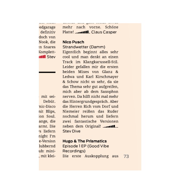 by/ Support by: Aka Aka, Bebetta, Beatamines, Thomas Lizzara, Mojiito, Homebase, Andre Lehmann, Kollektiv KlangGut, Lexer, Dembowski, The Chosen Two, Martin Dacar uvm... Feedback: Wann ist endlich wieder Sommer? Wir läuten die Strandsaison mit einem Gastauftritt von Nico Pusch ein. Nico feiert zusammen mit Damm Records seine erste eigene Ep und hat sich mit Mirco Niemeier, Rich vom Dorf und den Labelvätern Glanz & Ledwa gleich tatkräftige Unterstützung auf seine Platte geholt. Wir dürfen mit diesen Klängen schon mal die ersten Sonnenstrahlen aufs Gehör genießen. In der Presse: ![]() ![]() |